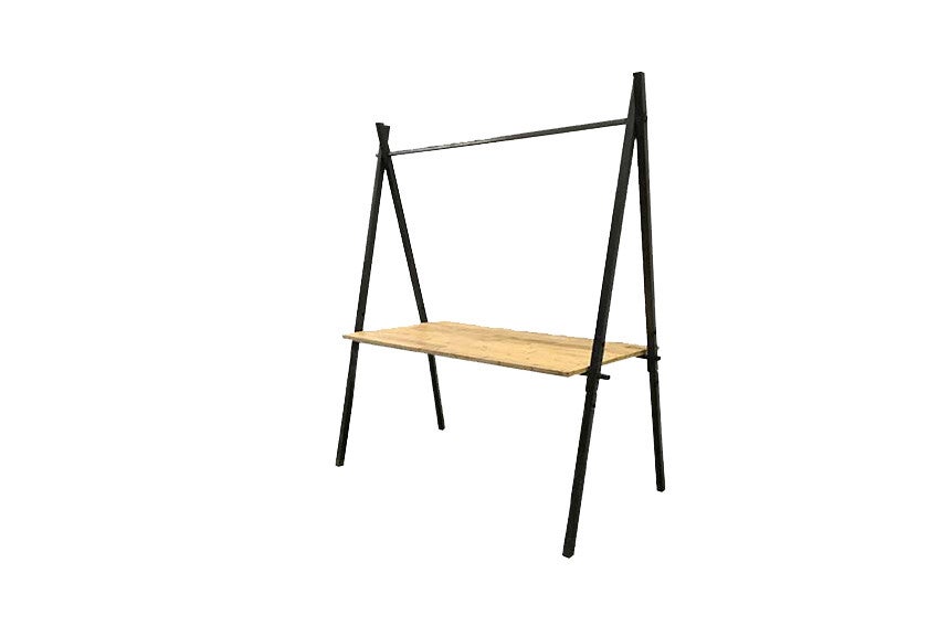 Deze statafel geeft, door het gebruik van zowel staal als hout, je evenement een stoere en toch warme uitstraling. De statafel bestaat uit 2 V-vormige staanders van staal met hiertussen een blad van OSB hout. Het blad is 180cm breed en 80cm diep. In totaal is de tafel 230cm hoog, dit is inclusief de staanders, het blad zit op een hoogte van 108cm.